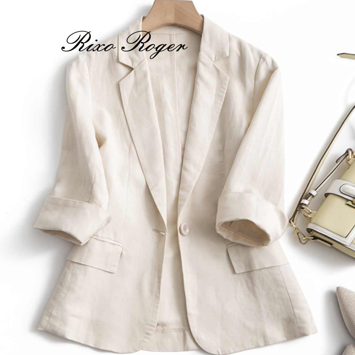纯棉亚麻西装女2021春夏季新款文艺休闲百搭棉麻小西服防晒衣女服