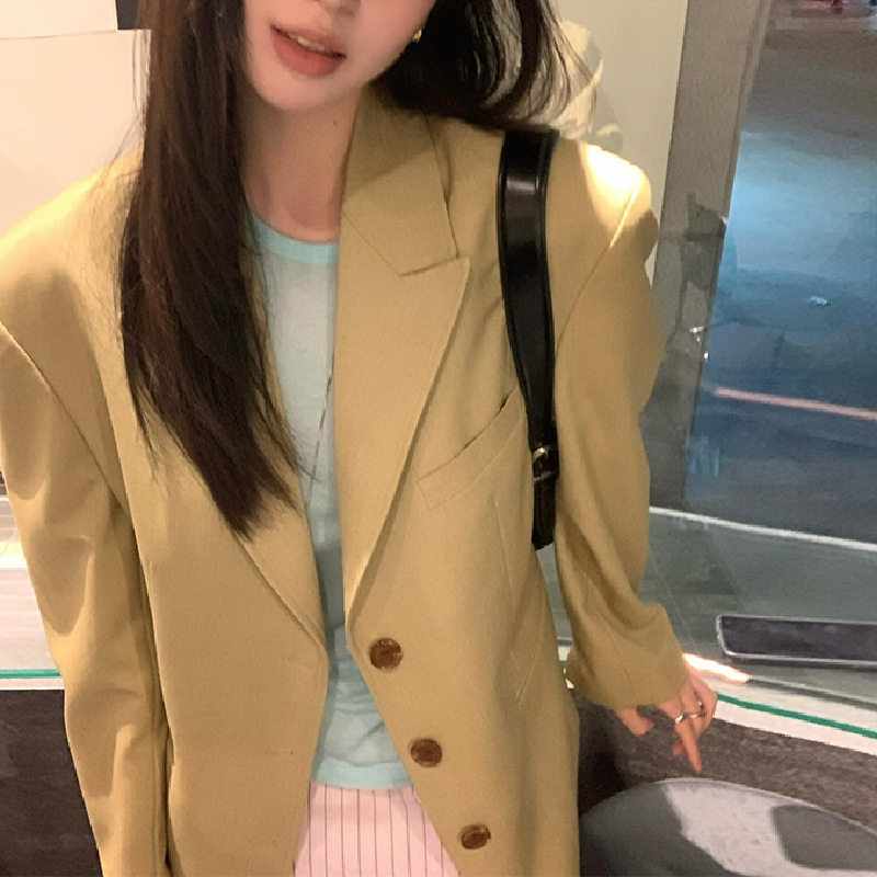 popchrio◆亚麻复古休闲廓形小西装外套高级感小个子西服上衣女春