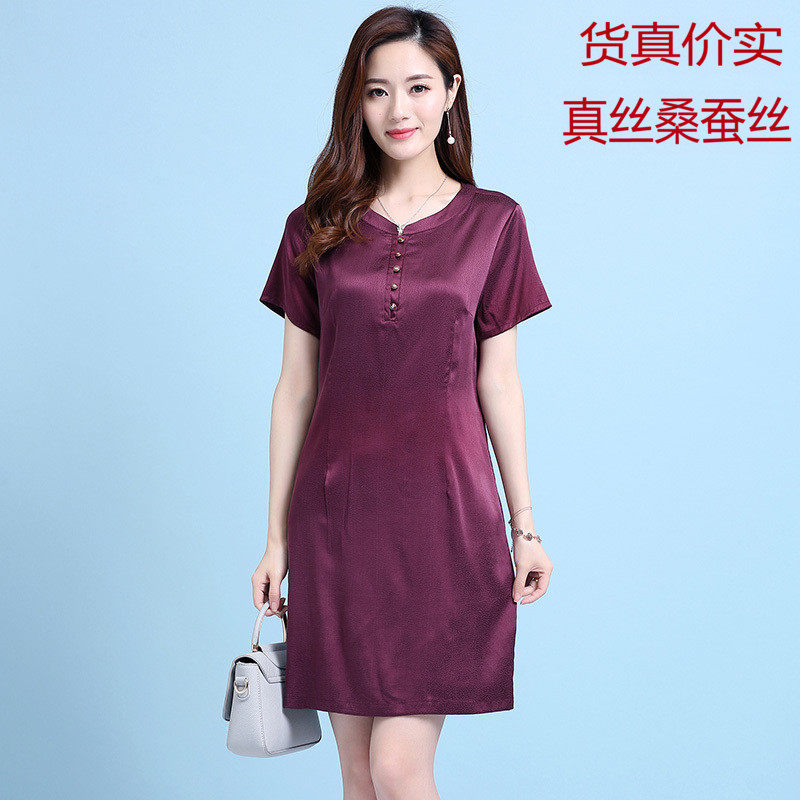 特价清仓夏季真丝女装正品新款妈妈裙子桑蚕丝大牌气质大码连衣裙
