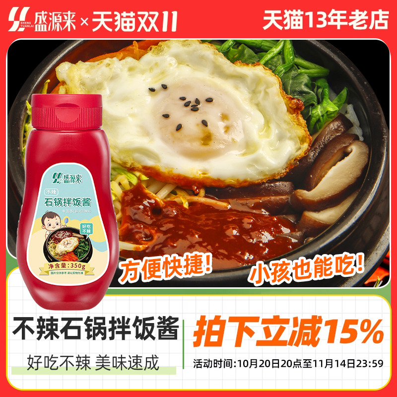 盛源来韩式石锅拌饭酱韩国辣酱朝鲜儿童不辣专用旗舰店低脂0脂肪