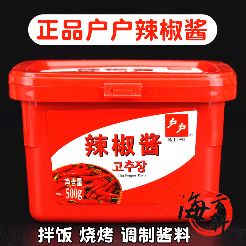 户户辣椒酱500g韩国辣酱石锅拌饭酱炒年糕甜辣下饭酱家用韩式辣酱