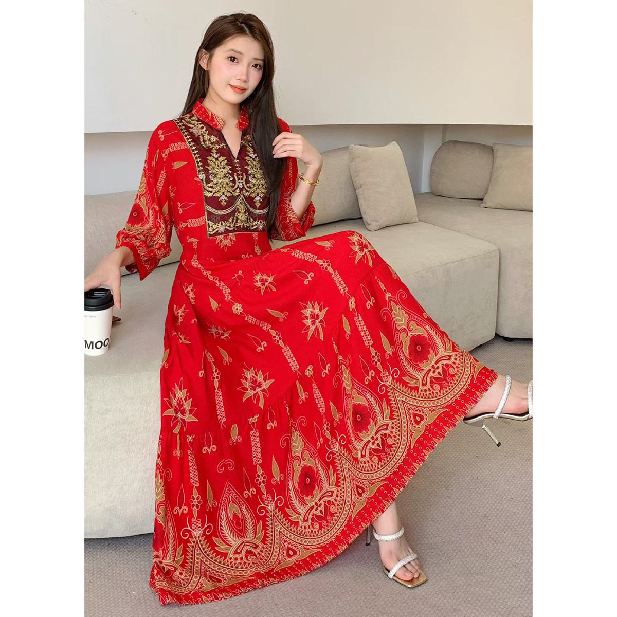 2026初夏穿搭高档棉绸连衣裙今年流行爆款三亚沙滩裙波西米亚长裙