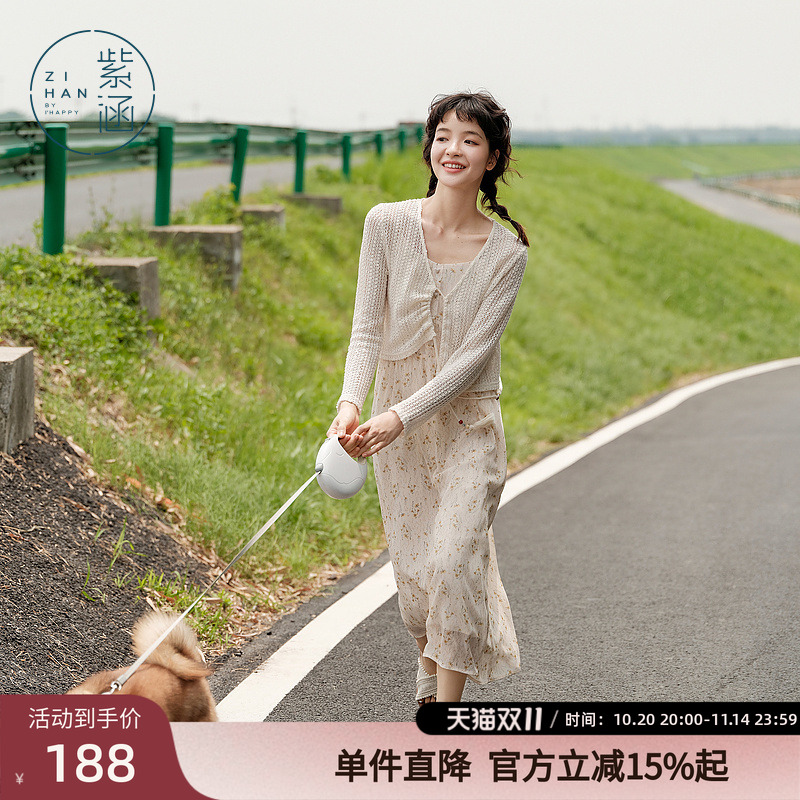 织物猪 异域公主 甜美度假风碎花吊带连衣裙女初秋穿搭开衫两件套