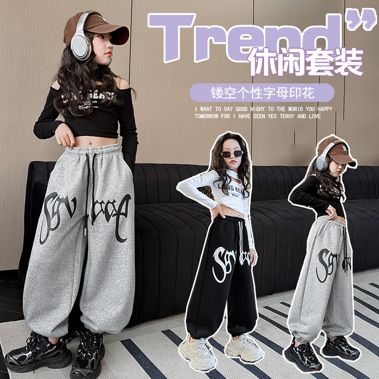 女童爵士舞演出服女孩练功服衣服上衣儿童街舞服装少儿裤子套装潮