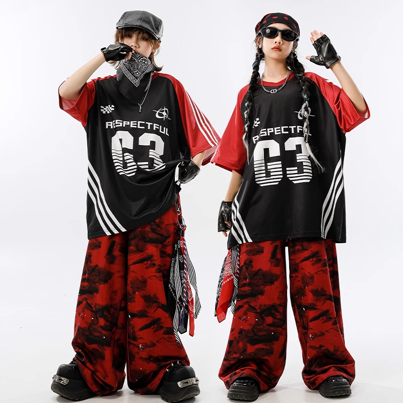 儿童街舞服装酷帅潮服黑红演出服男童套装女童嘻哈炸街六一表演服