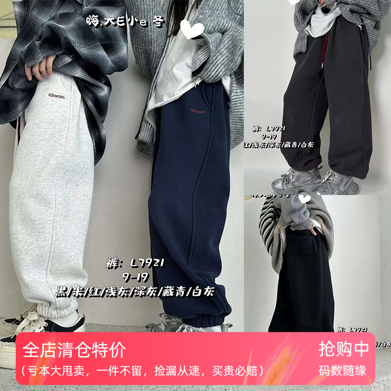 嗨大E小e童装儿童一体绒运动裤2024冬款男女童中童针织卫裤7921