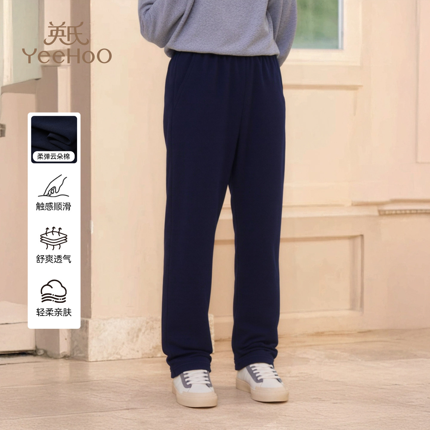 英氏男女童直筒休闲裤中童装2025年秋冬新款纯色宽松运动儿童裤子