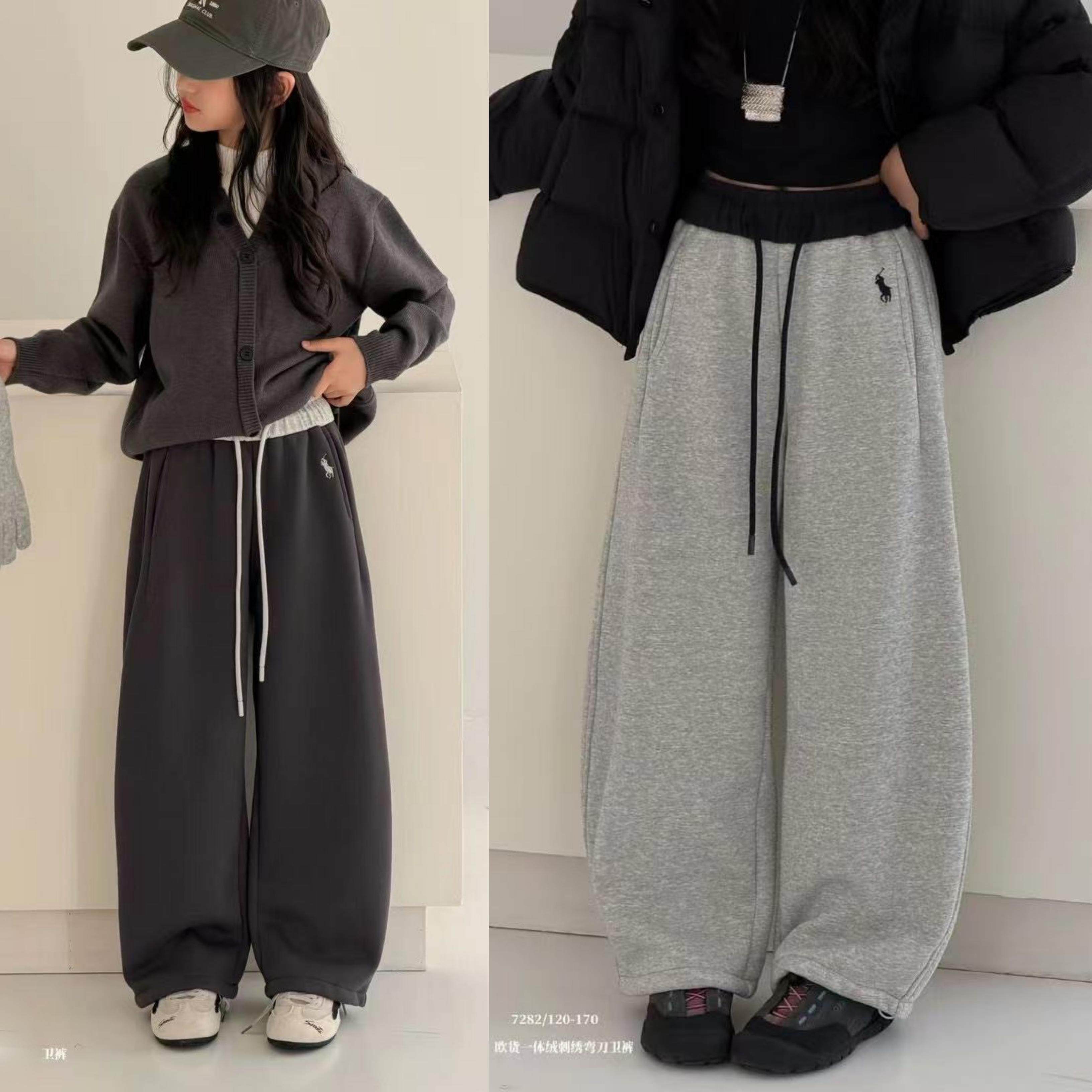 一体奥丽绒 儿童加绒卫裤 男童女童字母运动长裤 中童 秋冬款童装