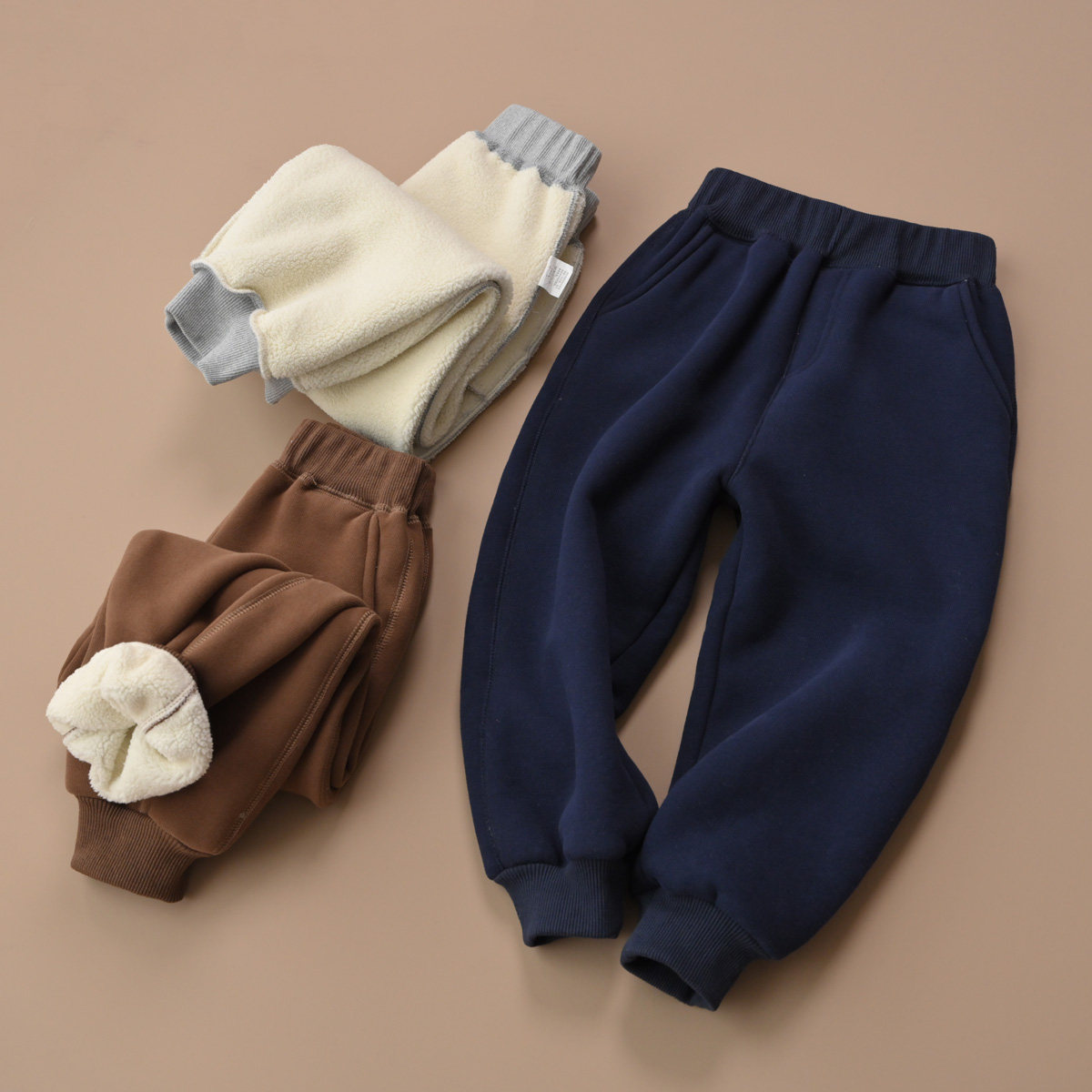 儿童加绒裤子冬季特厚羊羔绒保暖加厚棉裤女童运动裤男大中童外穿