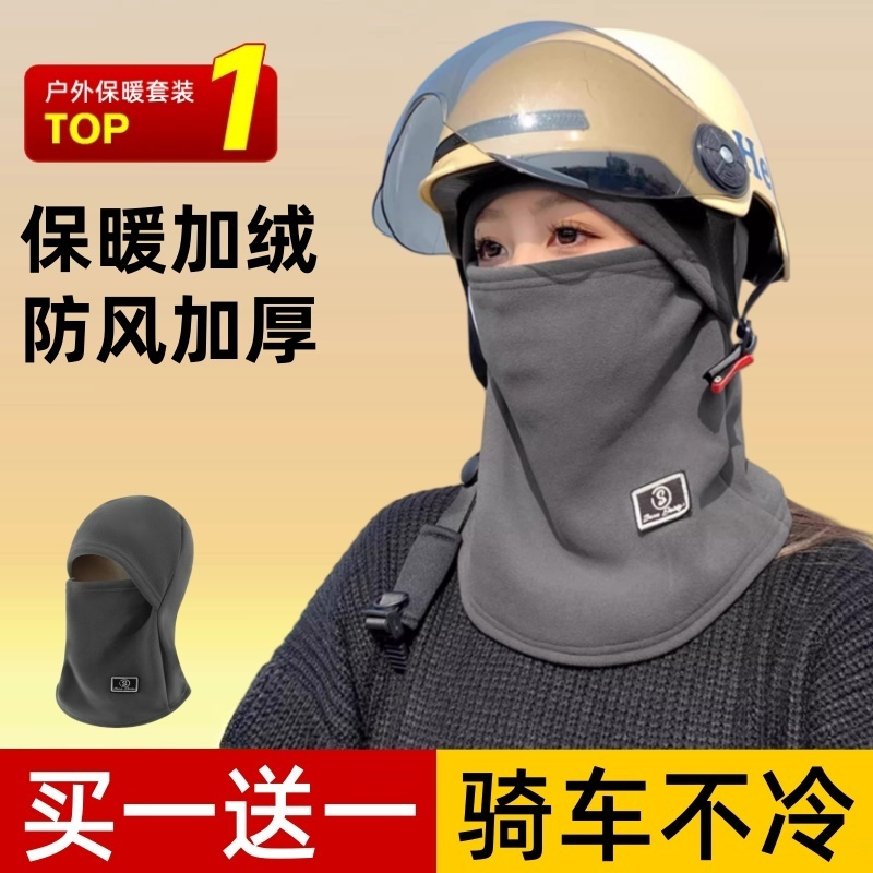 保暖帽子男女电动车自行车防风防寒围脖面罩一体帽秋冬加绒套头帽