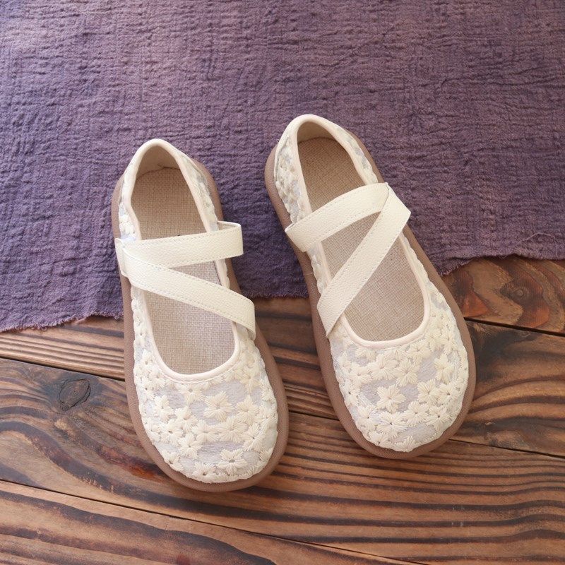 网纱透气网鞋女夏季女鞋软底网面洞洞单鞋透气镂空蕾丝包头凉鞋女
