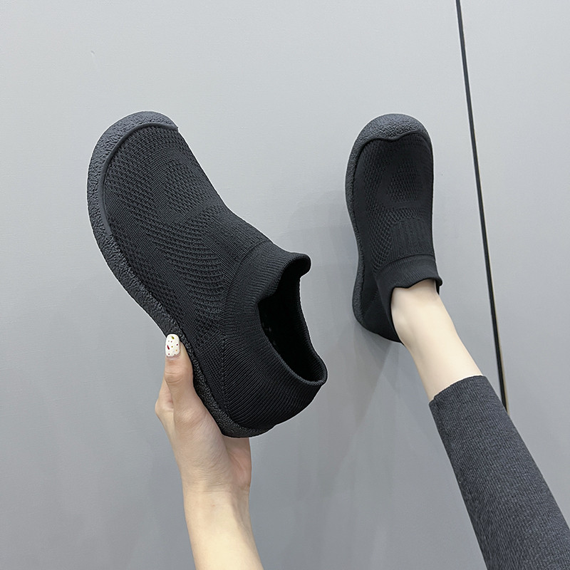一脚蹬女鞋2025新款飞织透气网鞋女夏春秋中老年人健步运动休闲鞋