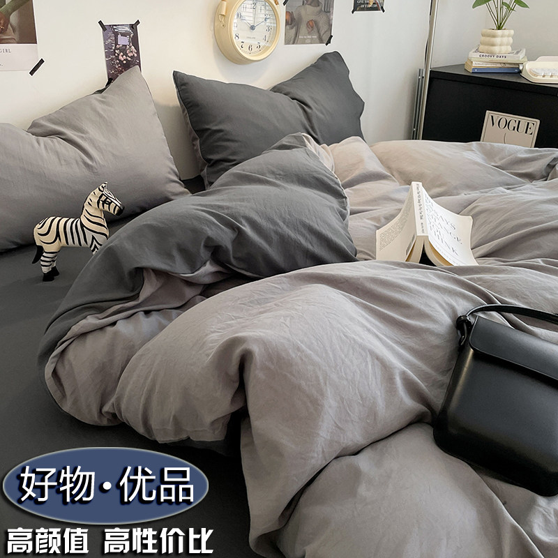 - 全棉简约纯色四件套