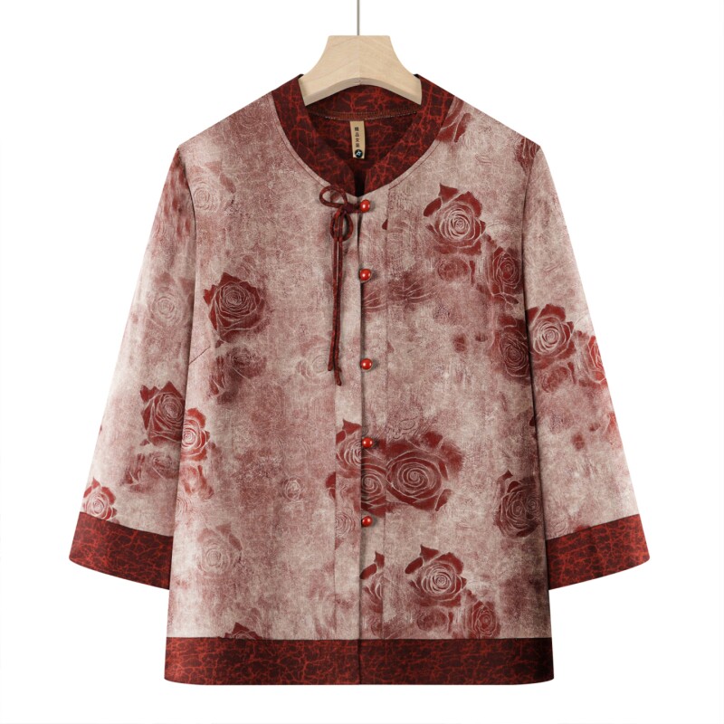 奶奶秋装衬衫薄款七分袖中老年人女妈妈春秋上衣服老太太外套开衫