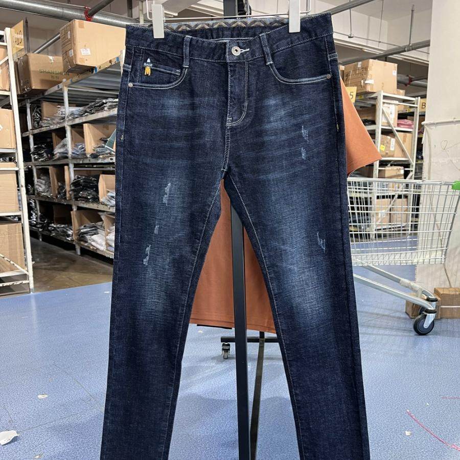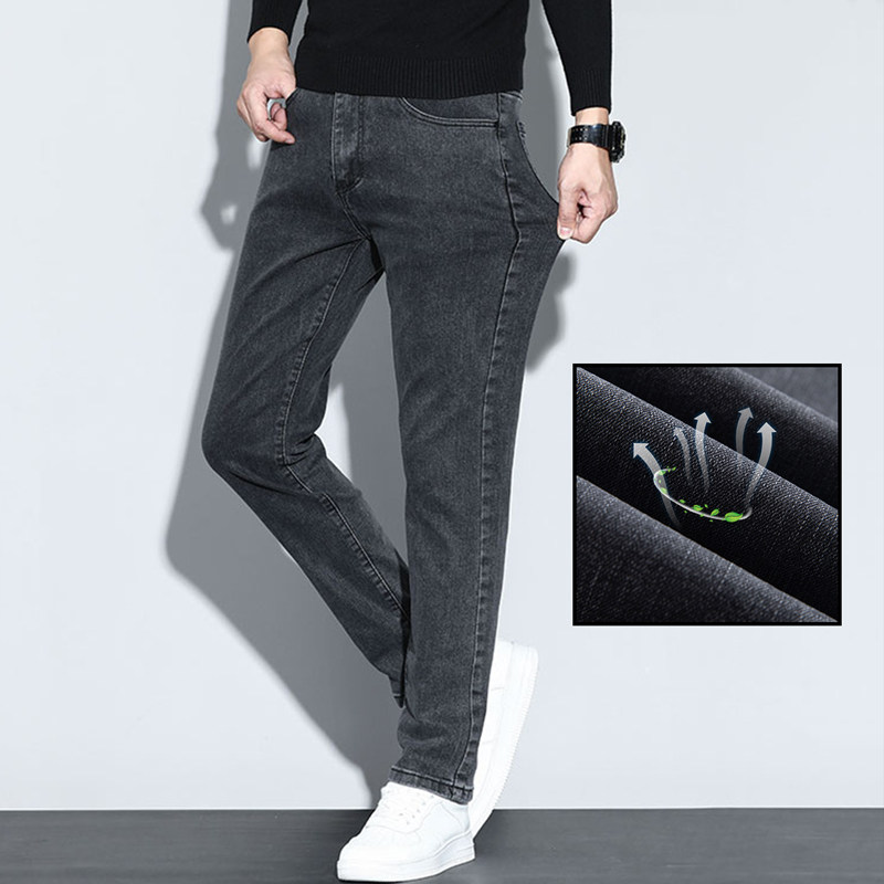 雅撤柜男士牛仔裤秋冬季时尚休闲宽松青年弹力加厚保暖直脚长裤子
