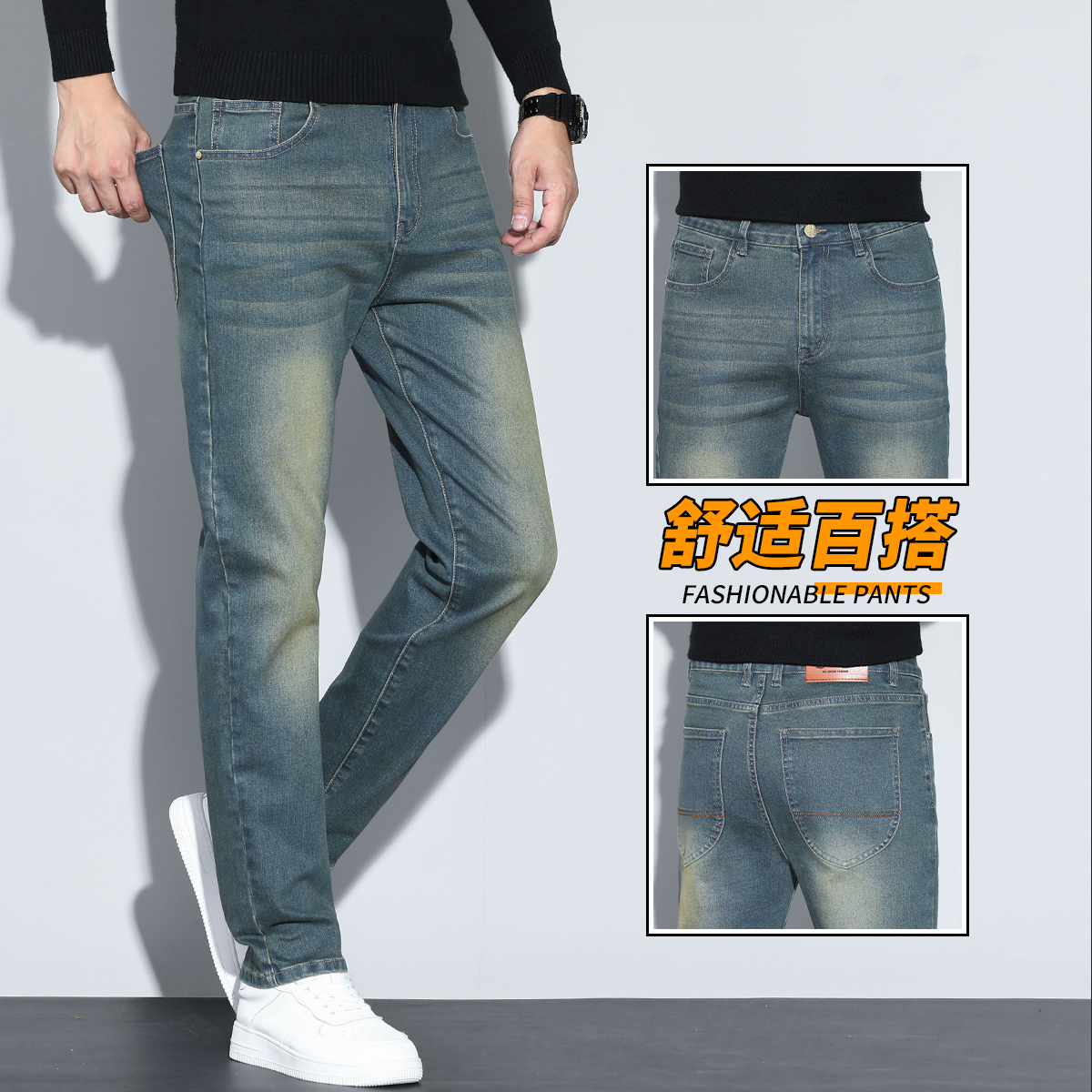 标配 YKK拉链!工厂剪标尾货男装 春秋款弹力直筒中腰休闲牛仔裤