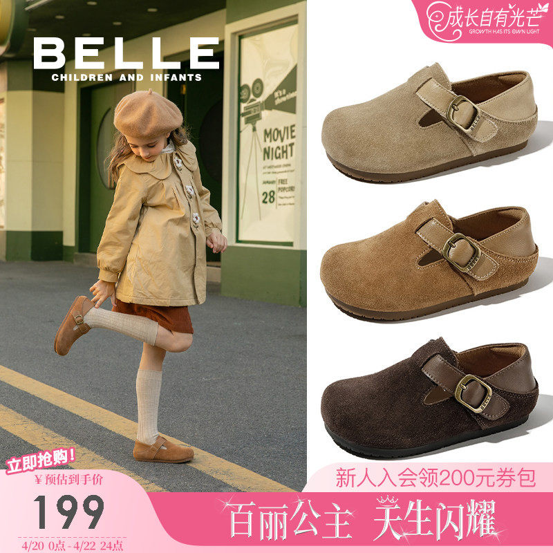 百丽童鞋女童勃肯鞋2026春季新款小女孩时尚单鞋儿童两穿宝宝皮鞋