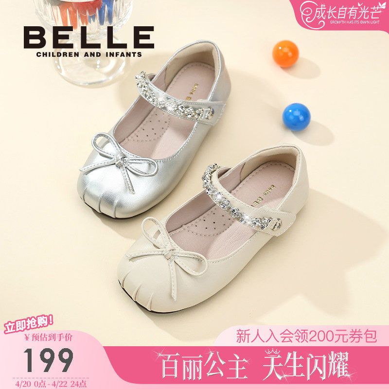 百丽童鞋女童皮鞋2026春夏水晶闪钻爱莎公主鞋软底防滑小女孩单鞋