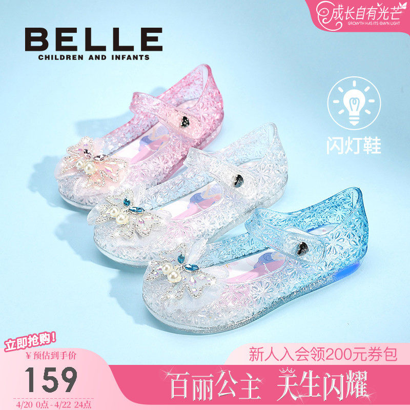 百丽童鞋女童凉鞋2026春季新款皮鞋儿童公主水晶鞋小女孩发光鞋子