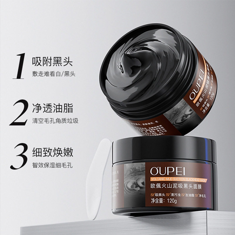 欧佩火山泥吸黑头面膜深层矿物泥粉刺油脂撕拉式面膜鼻膜男女护肤