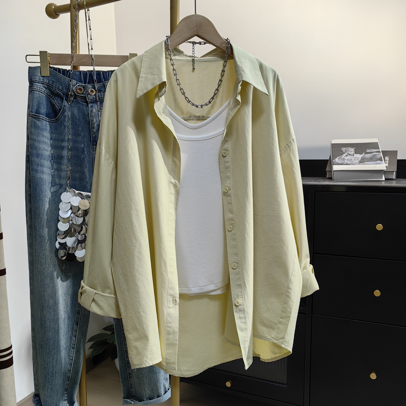 春秋新款简约字母刺绣白衬衫女休闲宽松时尚洋气纯棉衬衣开衫外套