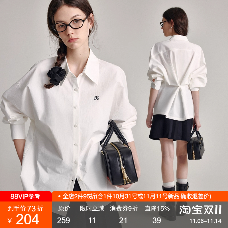 iamLOOSER 夏季系列 松弛高智感老钱风刺绣白衬衫宽松廓形长袖女