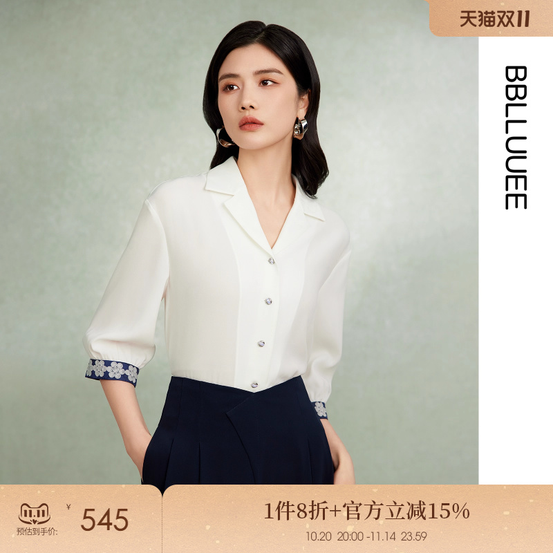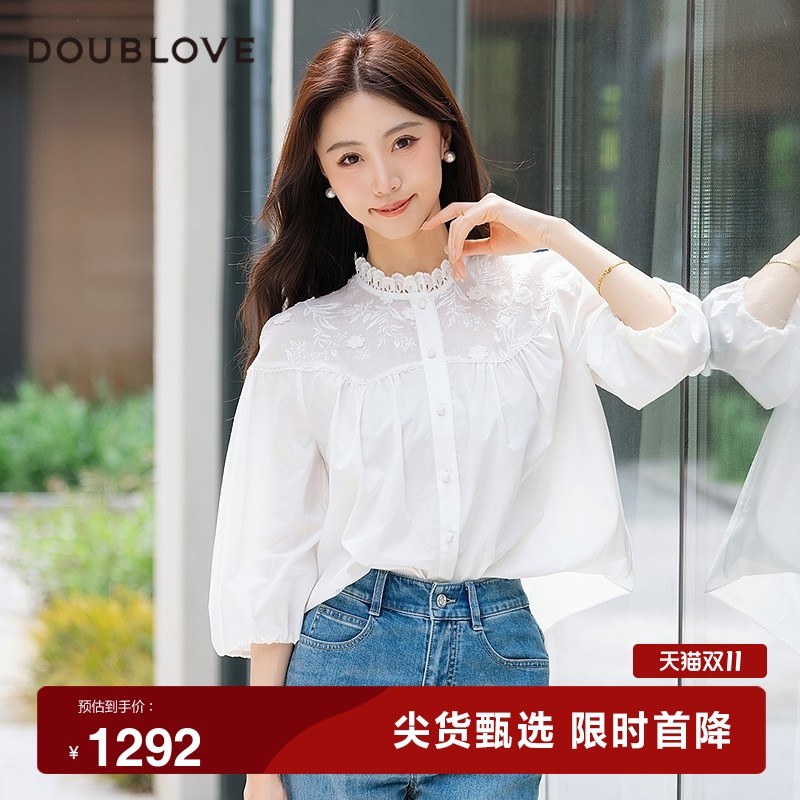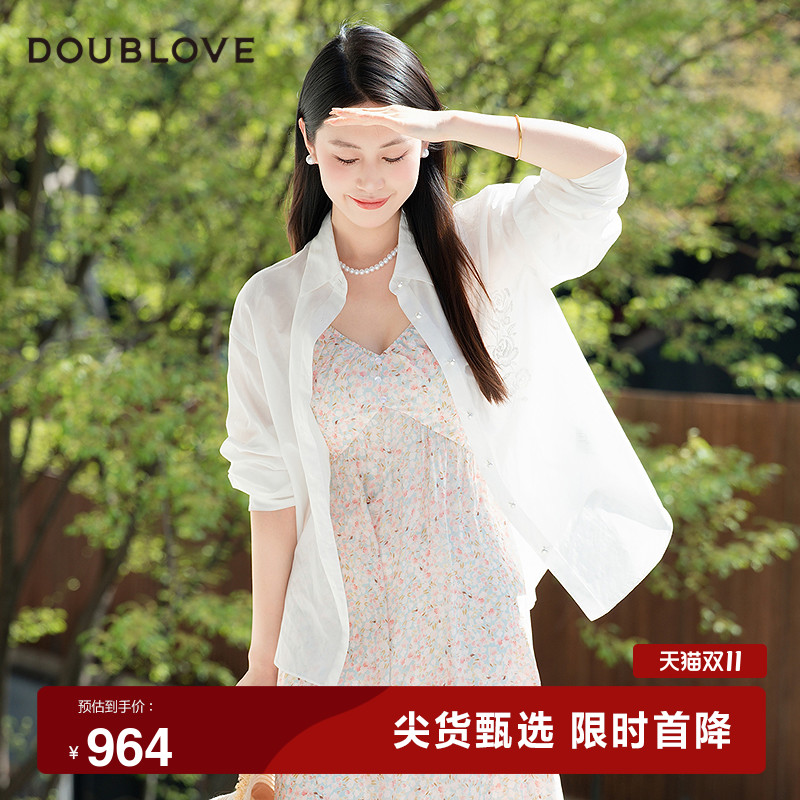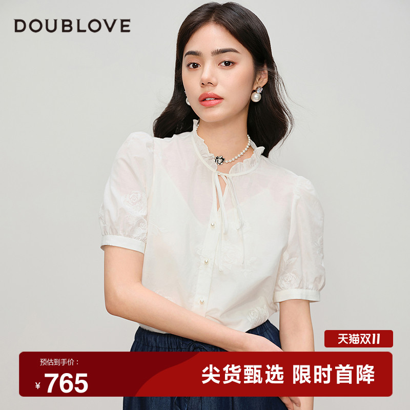 【轻软绢丝棉】玫瑰刺绣白衬衫含桑蚕丝DOUBLOVE贝爱25夏新款