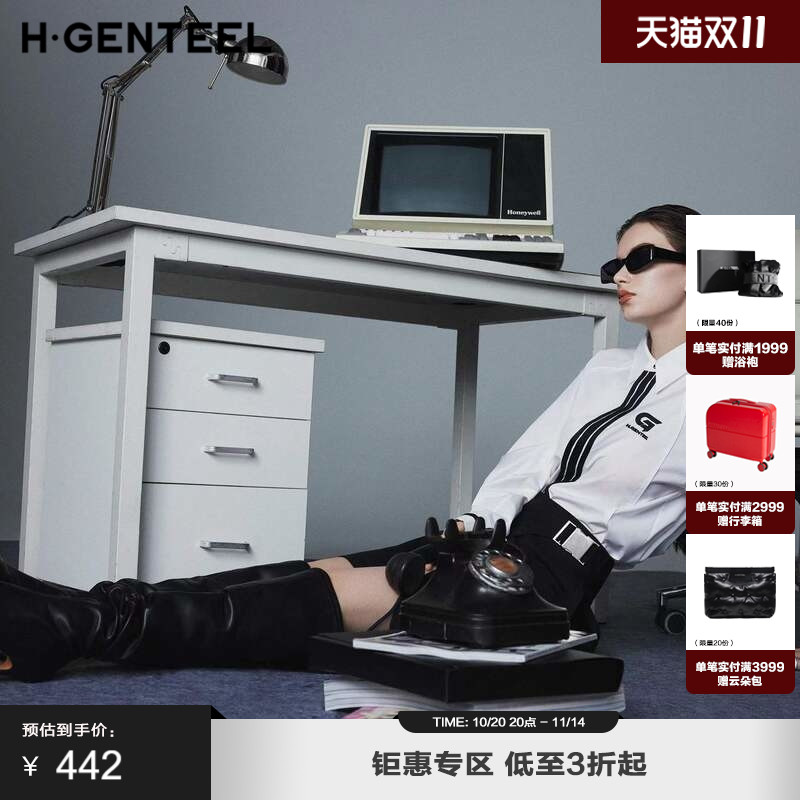 H·GENTEEL荷高女装学院风黑白条纹带logo刺绣白衬衫