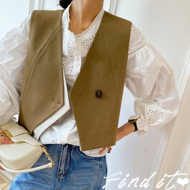 仅马甲 Find秋季新款名媛风法式刺绣白衬衫 单穿打底上衣气质通勤