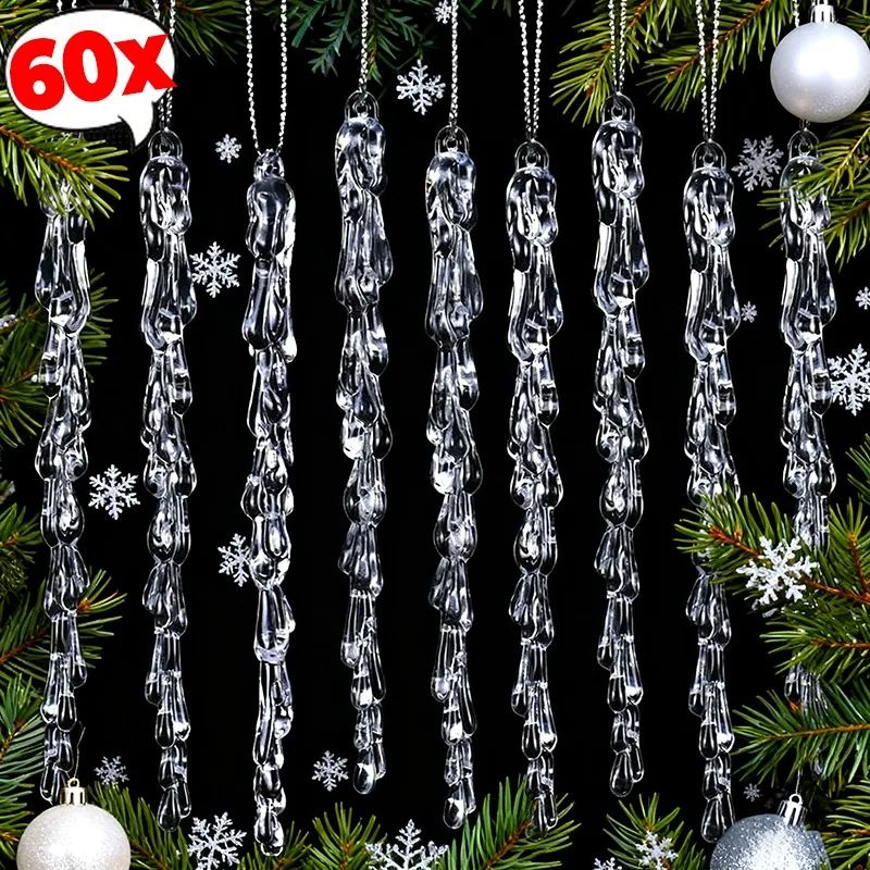 12/60x Acrylic Ice Icicle Christmas Hanging Crystal Drops Or