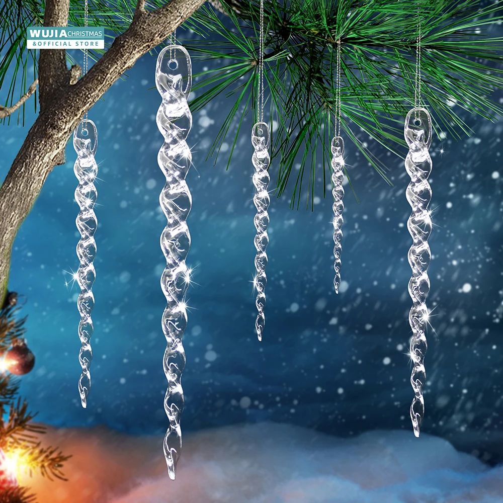 12/24pcs Christmas Clear Simulation Icicle Pendants Xmas