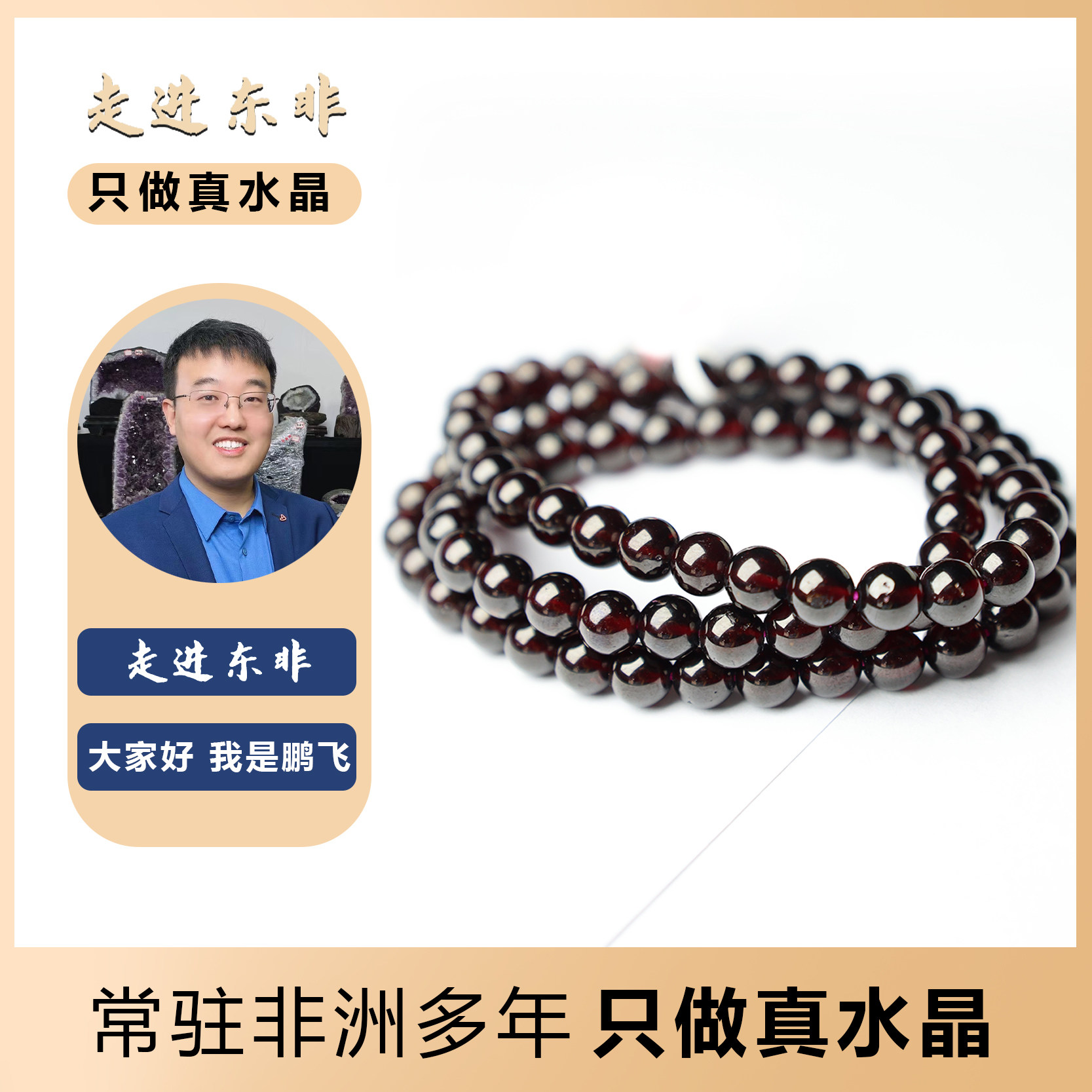 走进东非鹏飞珠宝天然石榴石酒红色多圈女款手链珠串时尚简约高端