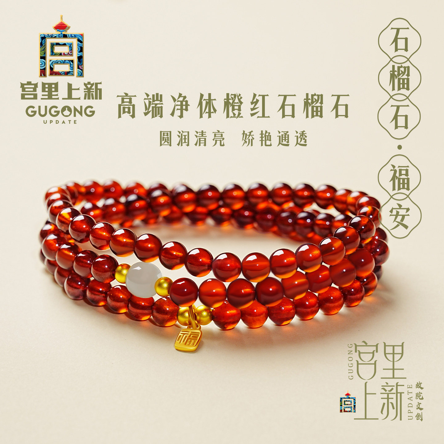宫里上新石榴石手链官方旗舰店女天然红色手串多圈生日礼物送妈妈