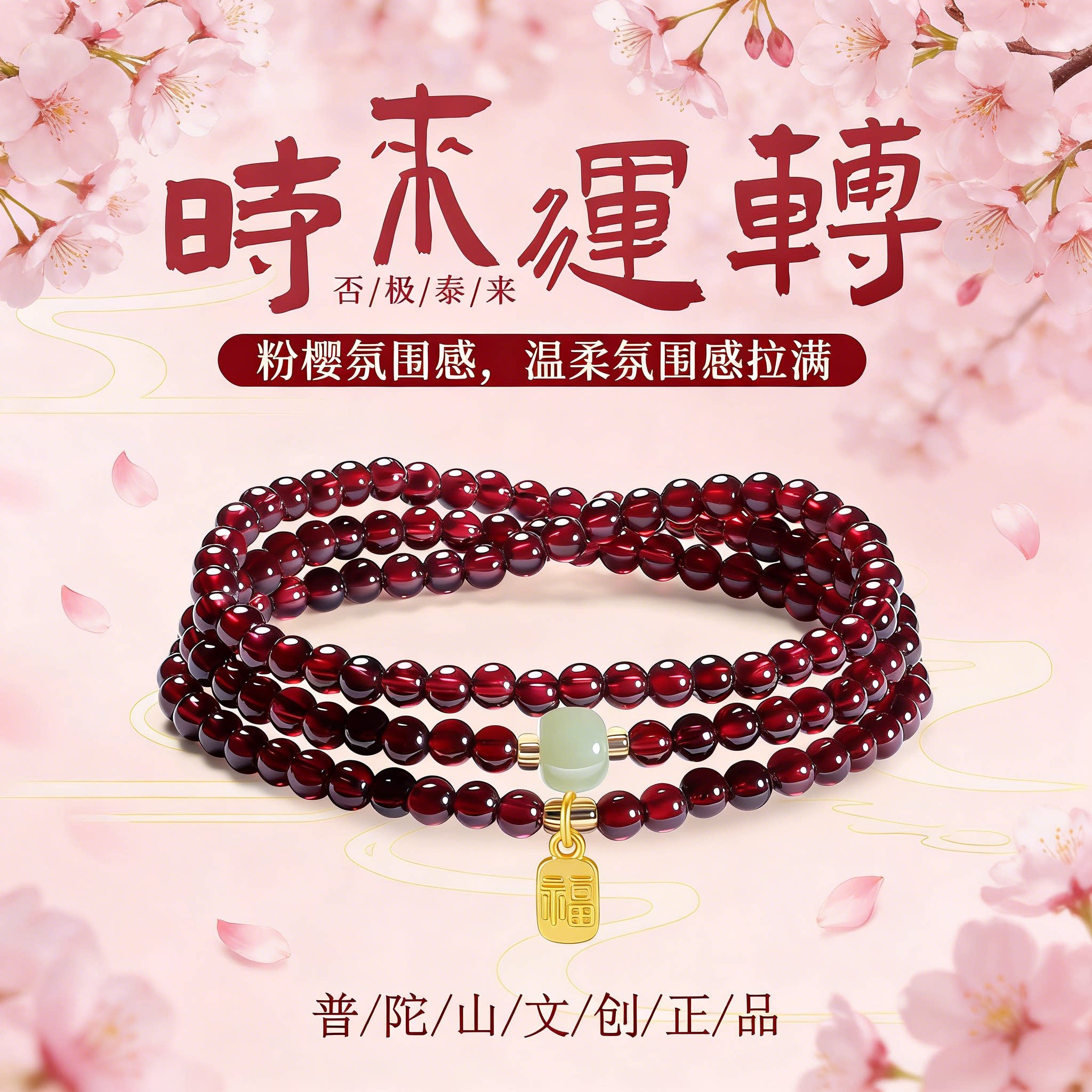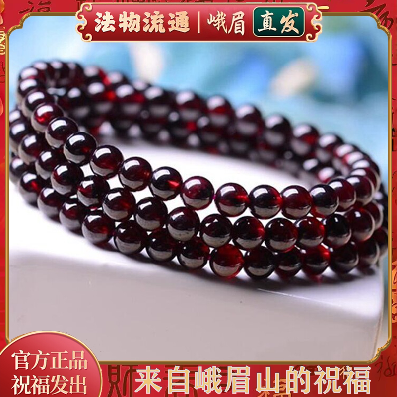 五台山文创天然石榴石手串三圈多圈女福牌石榴石手串手链新年礼物