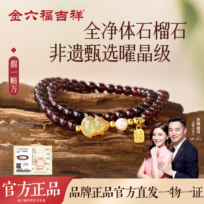 金六福吉祥非遗甄选天然多圈石榴石手串女款手链玉石手饰生日礼物