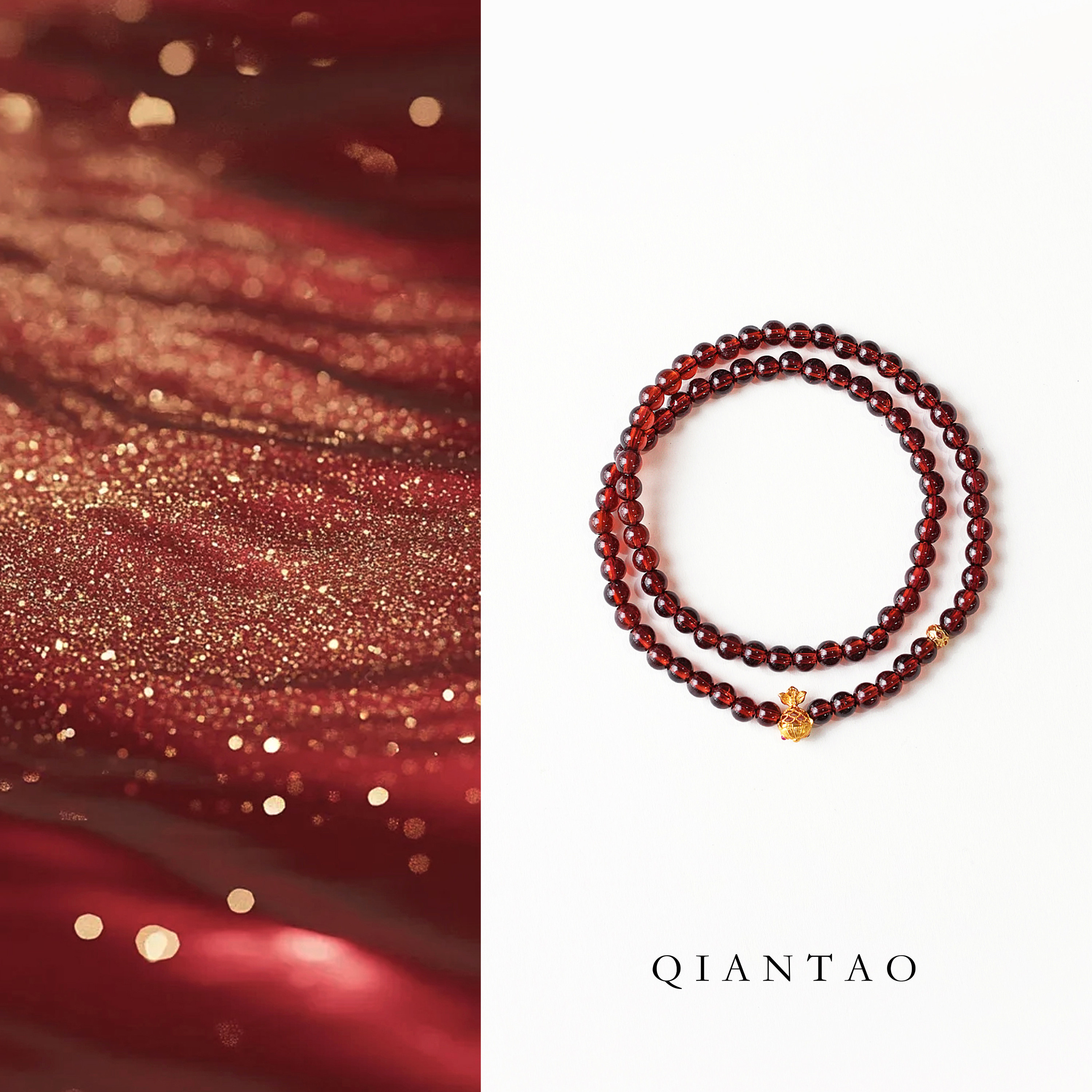 QIANTAO「福鲤」原创中式天然红石榴石多圈手串情侣锦鲤手链礼物