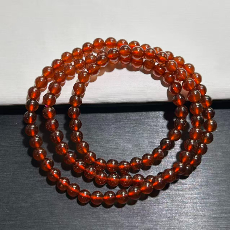 石榴石手链女东海水晶玉石散珠子福牌酒红三圈多圈晴水和田玉手串