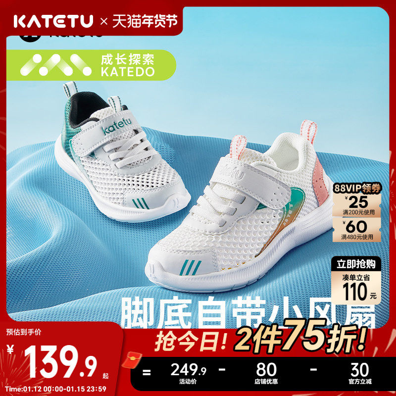 卡特兔儿童运动鞋男童2025夏季网眼透气小白鞋篮球鞋女童跑步鞋