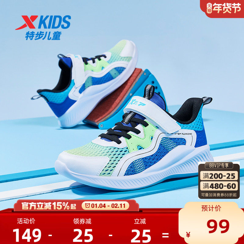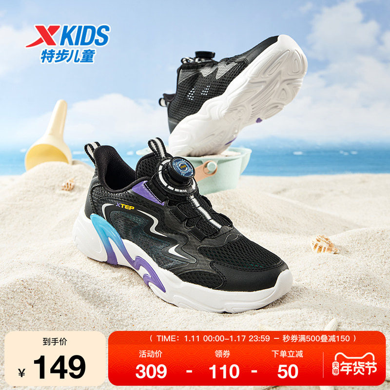 特步童鞋儿童减震跑步鞋夏季新款男童旋转扣运动鞋大童网面透气鞋