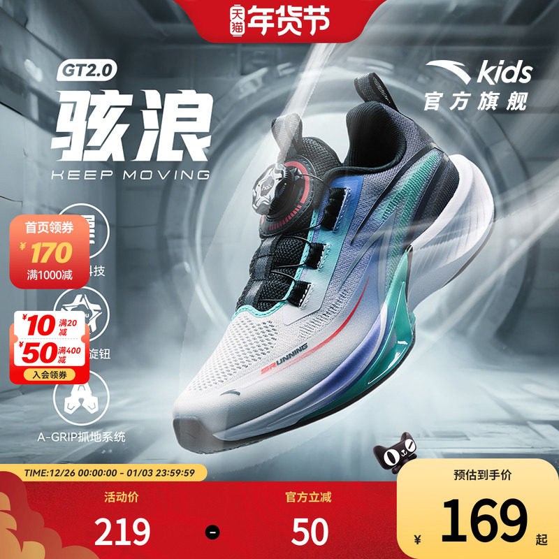 安踏儿童运动鞋骇浪跑鞋2025春夏季新网面男大童专业纽扣鞋男童鞋