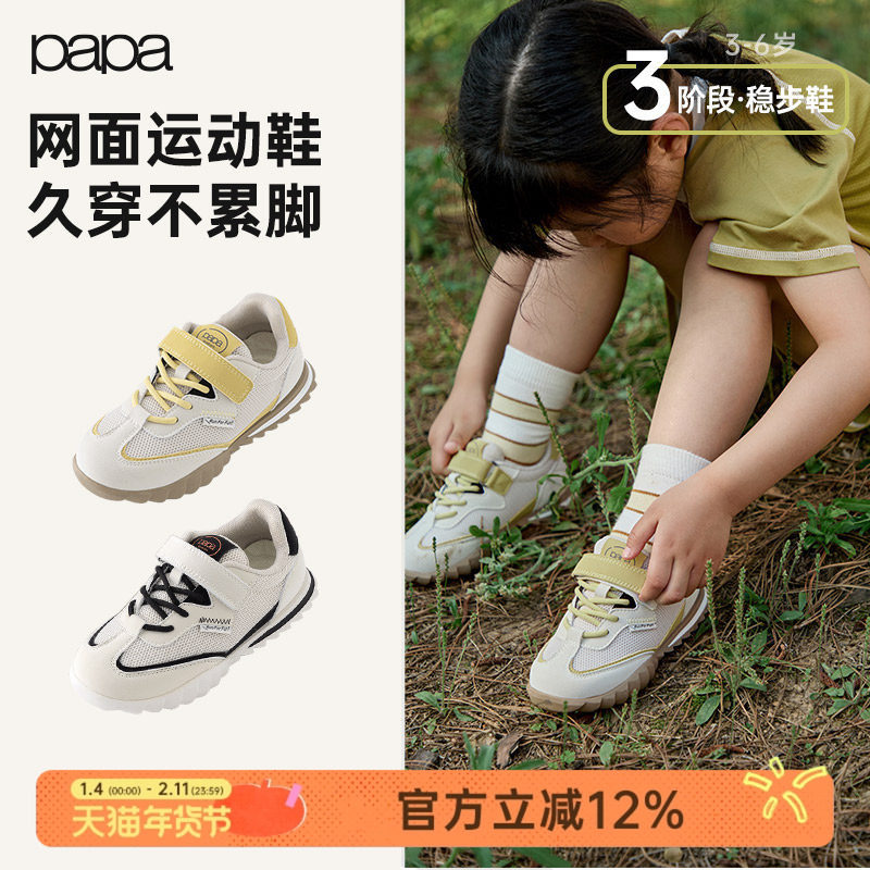 papa爬爬儿童夏季网面透气运动鞋魔术贴防滑耐磨休闲女童男童