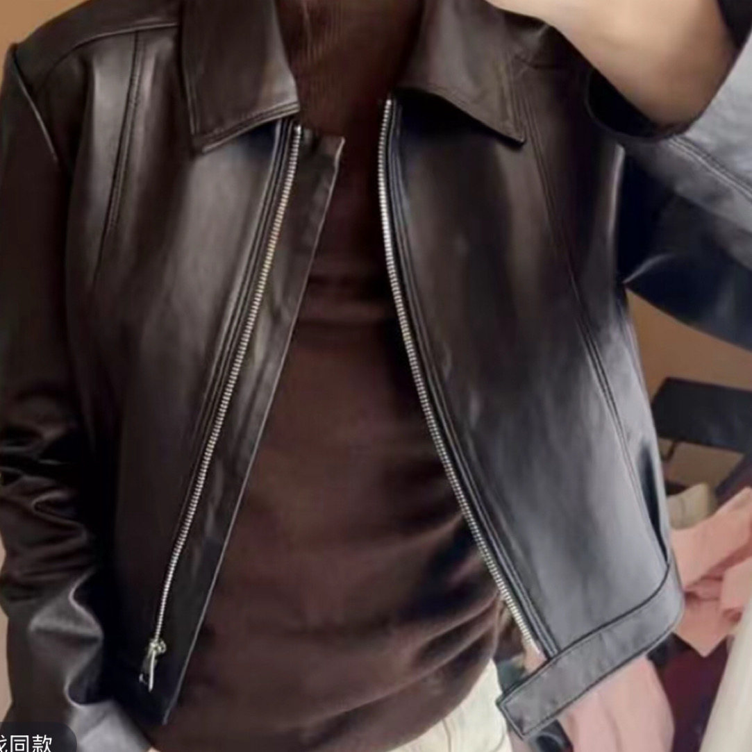 新款欧货真皮皮衣女潮流时尚2024春款欧洲站绵羊皮夹克机车外套