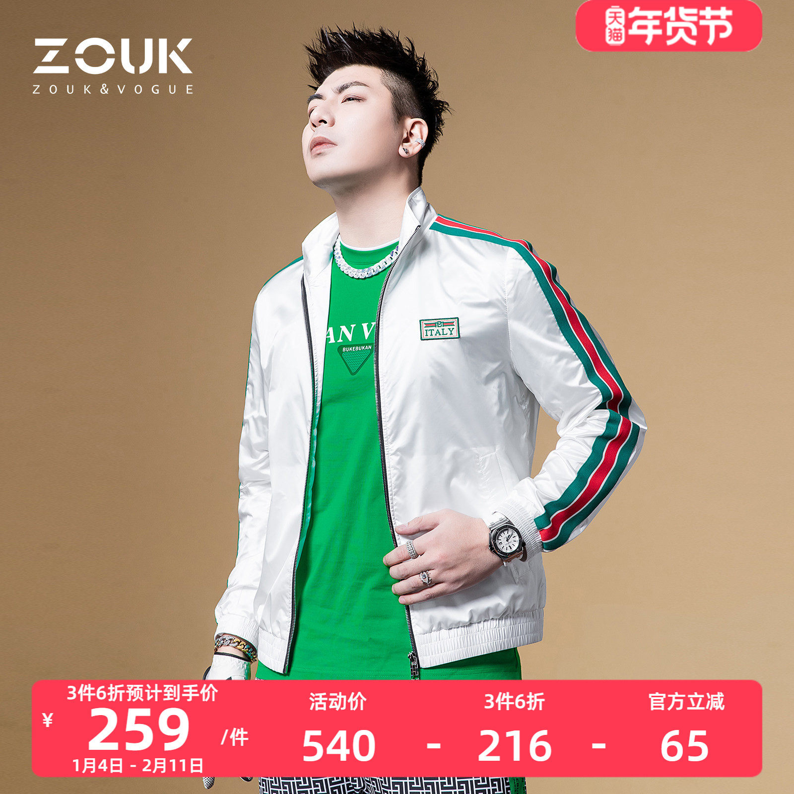 ZOUK欧洲站男装春款2022年新款条纹织带立领夹克外套男潮牌春秋季