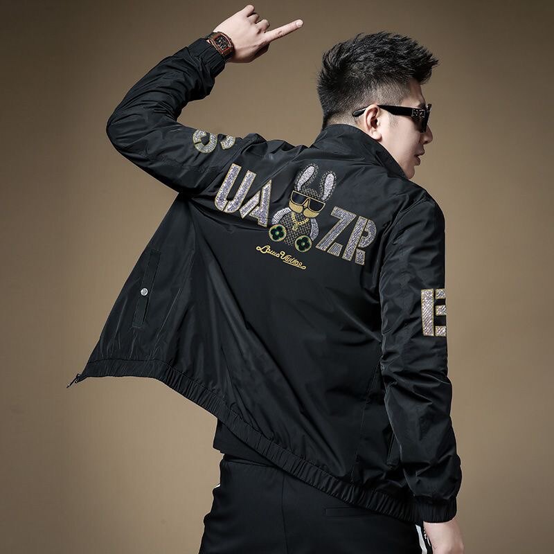 欧洲站高端刺绣夹克外套男款2023春秋季薄款休闲潮流春款上衣男士