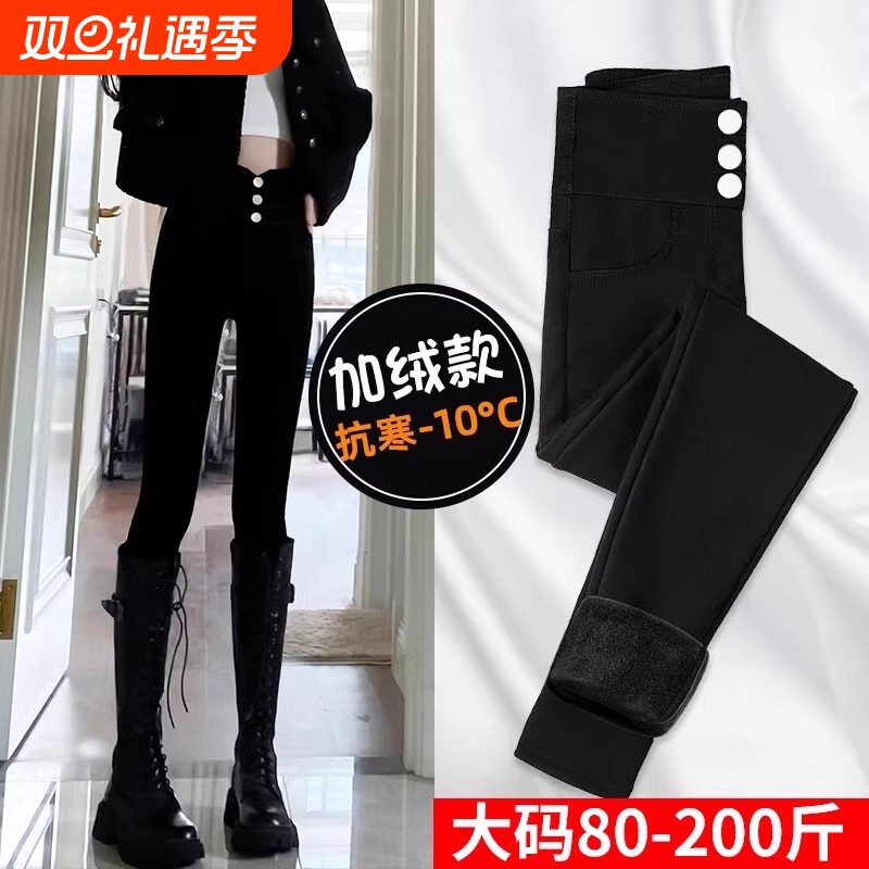 大码高腰打底裤女秋冬外穿2025新款胖mm加绒小黑裤紧身小脚裤高弹