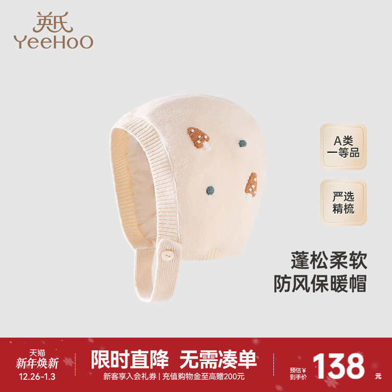 【商场同款】英氏婴儿帽子春秋防风保暖婴幼护耳帽子宝宝新生儿帽