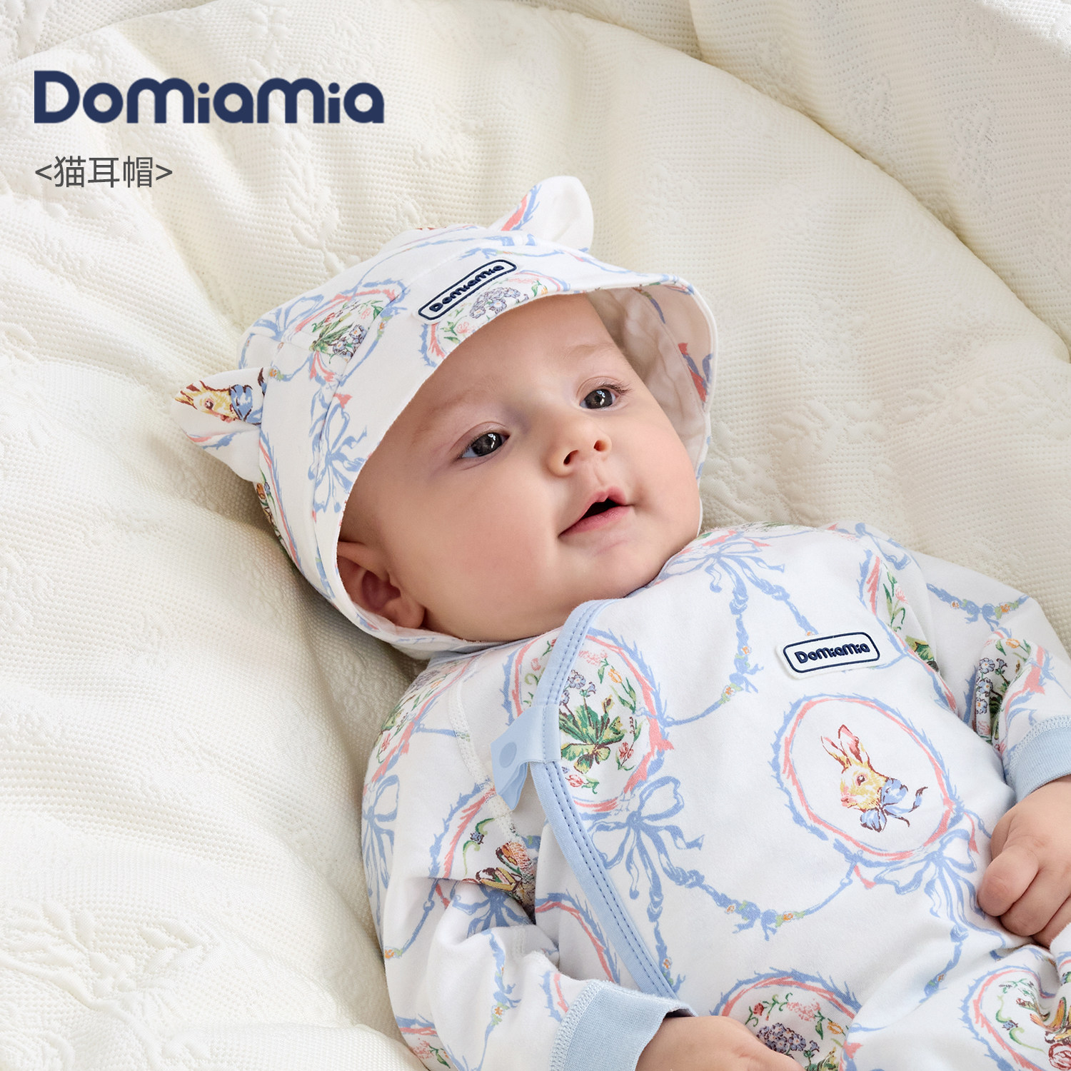 Domiamia婴幼儿猫耳胎帽春夏季0-6个月初生宝宝囟门帽新生儿帽子