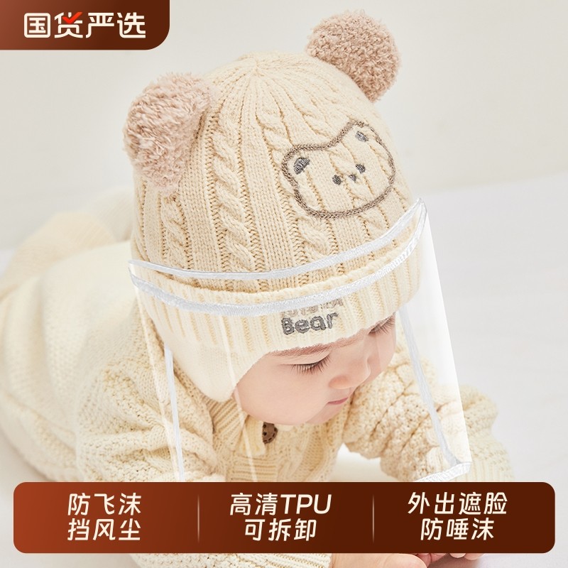 婴儿防护面罩透明全脸头罩小月龄宝宝外出防护帽防飞沫新生儿帽子