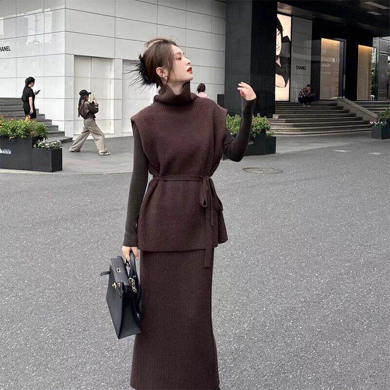 欧洲站冬天搭配一整套2024新款女装针织裙子法式桔梗两件套装秋冬