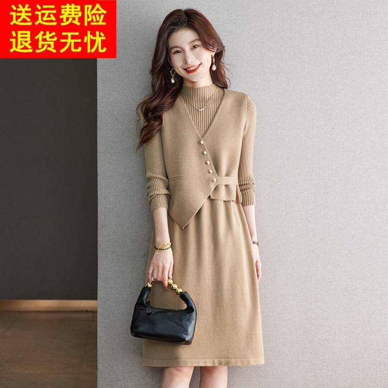 高级感马甲针织连衣裙两件套装女秋冬年轻妈妈小个子中长款毛衣裙